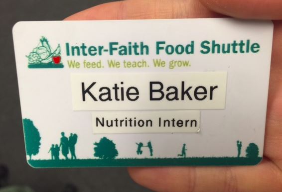 Today was a crazy busy day! First I met with Ms. Karkare, a nutrition consultant and registered dietitian. Later, I had a tour of the Interfaith Food Shuttle building and an overview of what they do there. I met the team of interns, and even experienced a webinar of how the new Dietary Guidelines for Americans will impact Cooking Matters (one of Interfaith Food Shuttle’s programs). Plus, I got this pretty sweet official-looking nametag above. Then, I interviewed the outpatient dietitian at Wakemed Cary, Ms. Kharod. Each interaction I had today gave me a different example of all the ways nutrition experts impact the world. Ms. Karkare works with her clients in a one-on-one setting, while Interfaith takes more of a community-centered focus around improving the diets of impoverished Americans in the Triangle. Ms. Kharod’s work is similar to Ms. Karkare’s, but in a more clinical setting. I look forward to experiencing and exploring many different aspects of this diverse field of study!